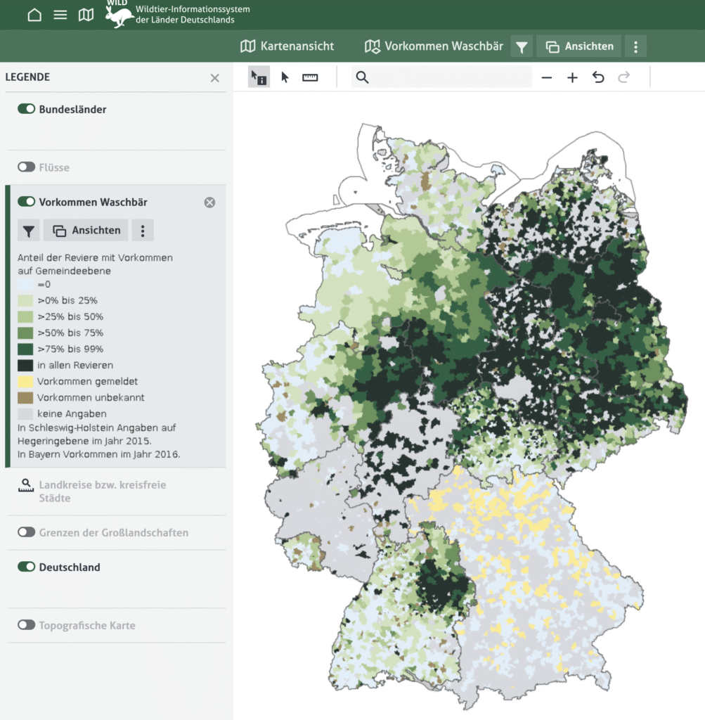 Der Waschbär (Procyon lotor) ist seit 1934 in Deutschland anzutreffen. Tatsächlich war es damals eine bewusste Auswilderung, um eine neue jagdbare Art zu etablieren. Leider war es mit dem Wissen um ökologische Zusammenhänge zu dieser Zeit noch nicht weit her.